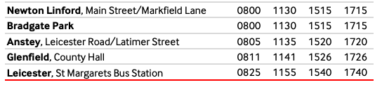 从莱斯特市中心 St Margarets 公交站出发: