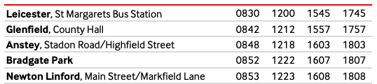 从莱斯特市中心 St Margarets 公交站出发: